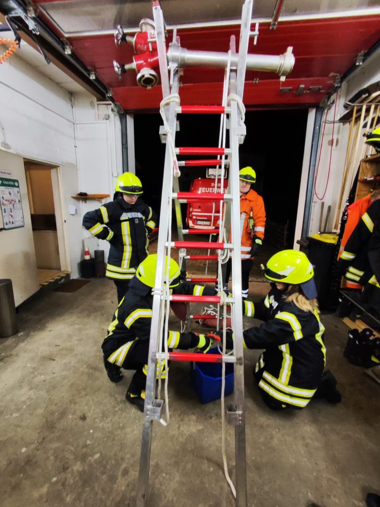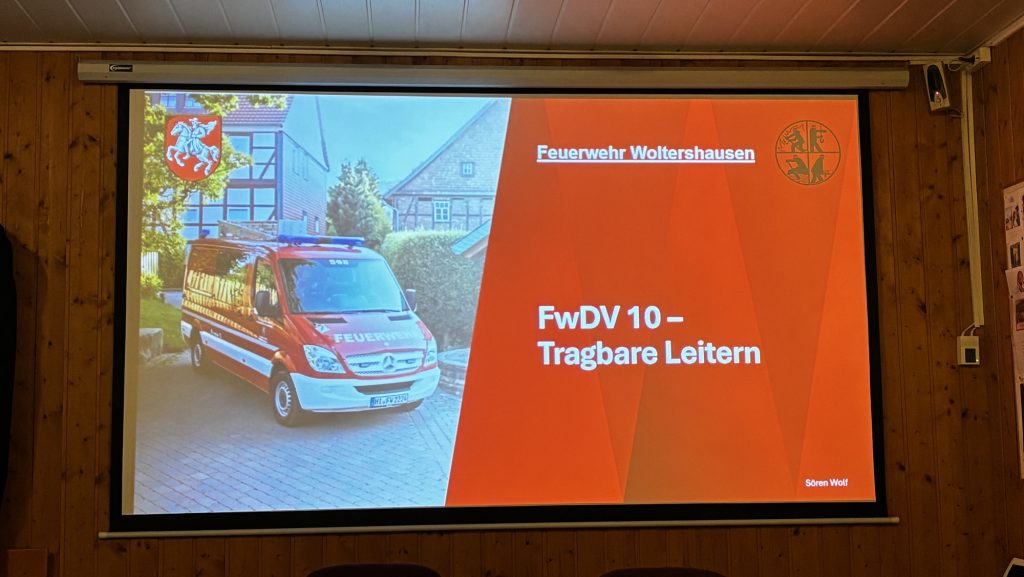 Das heutige Thema beim Dienstabend lautete Tragbare Leitern nach FwDV10. Angefangen haben wir mit einem theoretischen Teil:
