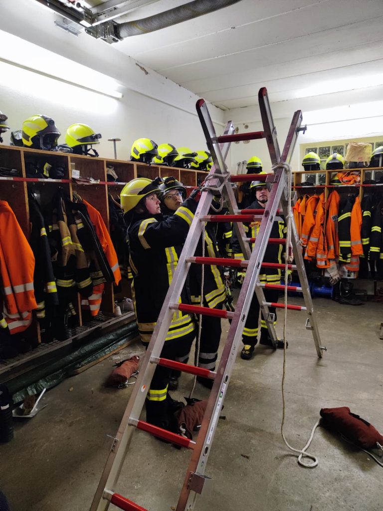 Die erste Gruppe richtete die vierteilige Steckleiter auf und die zweite Gruppe baute eine Bockleiter auf.